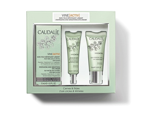 Este coffret inclui um Cuidado Desfatigante Alisador Olhos, com oferta de um Sérum Antirrugas Ativador de Luminosidade e um Cuidado Hidratante 3 em 1.
